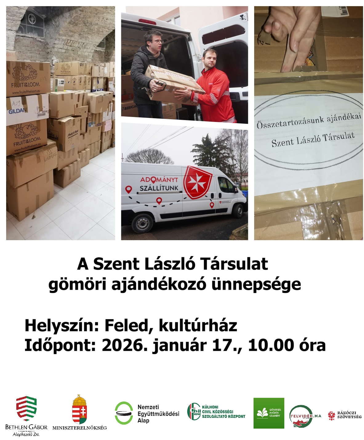 Szeretettel hívunk minden érdeklődőt a Szent László Társulat ajándékozási akciójának ünnepélyes átadására, amelyre 2026. január 17-én (szombaton) kerül sor Feleden.
